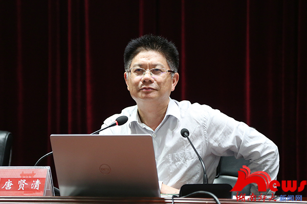 (记者 黄林键 刘书含 通讯员 陈芬芳 姚汀)6月12日晚,校纪委书记唐贤清在国际学术报告厅为大象影视大全在线观看2018级学生讲授以“推动共建‘一带一路’走深走实”为主题的“形势与政策”课。讲座由院党委副书记熊剑峰主持。