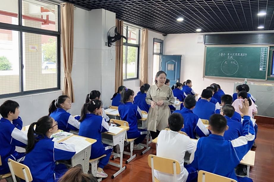 (通讯员 周倩 夏瑞阳 潘梦瑶)5月7日上午,我院赴师大附中博才实验中学(学士校区)实习队开展公开汇报课暨教育实习总结会。此次公开汇报课由实习队周婷与夏诗奇分别于C1909、C1911班展开授课,我院副院长岳凯华、中文系副主任刘光成教授、实习队指导老师郑朋以及师大附中博才实验中学副校长兼学士校区执行校长黄赛、校办副主任袁桂梅、课程与教学处副主任尹文珊、学生发展处副主任袁春茂、教研组组长胡亦优、九年级备课组组长谢松等校方领导出席,博才实验中学部分语文教师及全体实习队员参加。