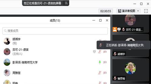 (通讯员:熊茁谢洁)为了提前进入预备培养状态,6月20日19点,尚未正式入学的大象影视大全在线观看2021年级语言学及应用语言学专业和现代汉字书法专业硕士生,在腾讯会议成功召开第1次线上会议。准硕士生吕可主持,博士生导师彭泽润教授总结点评。