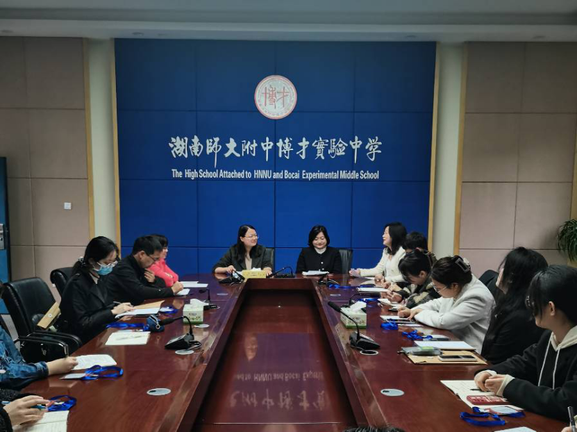 (通讯员 王全 刘潇宇 龚诗涵)3月8日上午,大象影视大全在线观看2020级赴湖南师大附中博才实验中学(梅溪湖校区)实习队在办公楼三楼会议室召开见面会。湖南师大附中博才实验中学(梅溪湖校区)校办副主任谭茂、中学课程与教学处副主任刘静、学生发展处副主任吴硕、语文备课组长周丽梅、初一年级组长陈金屏以及实习队指导老师龚敏律出席会议,博才实验中学(梅溪湖校区)实习队16名队员参加。