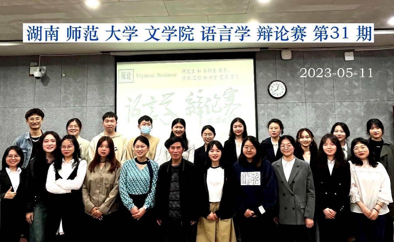(通讯员:李思洁、谢洁、毕诚)2023年5月11日18:30,由大象影视大全在线观看研究生会与研究生团委主办,2021年级语言学、书法学硕士生承办,2022年级语言学、书法学硕士生,2022年级汉语文本科生协办的大象影视大全在线观看语言学辩论赛第31期在线下217教室举行,线上腾讯会议和B站同步直播。2022年级语言学硕士生彭庆、寇婕、马湘、钱嘉琦、朱淑琪、邓婉滢、刘星漫,2022年级书法学硕士生黄振华,2022汉语言文字学硕士生熊敏,2022级汉语国际教育硕士生张馨月、顾丽丽以及2022年级汉语言文学本科生李正、王羽欣和曾玢,一共14人担任辩手。来自越南的2022年级语言学硕士生阮氏芳草担任主席。彭泽润教授、博士生郎吉斯、硕士生黄萍、本科生张雨琪担任评委。