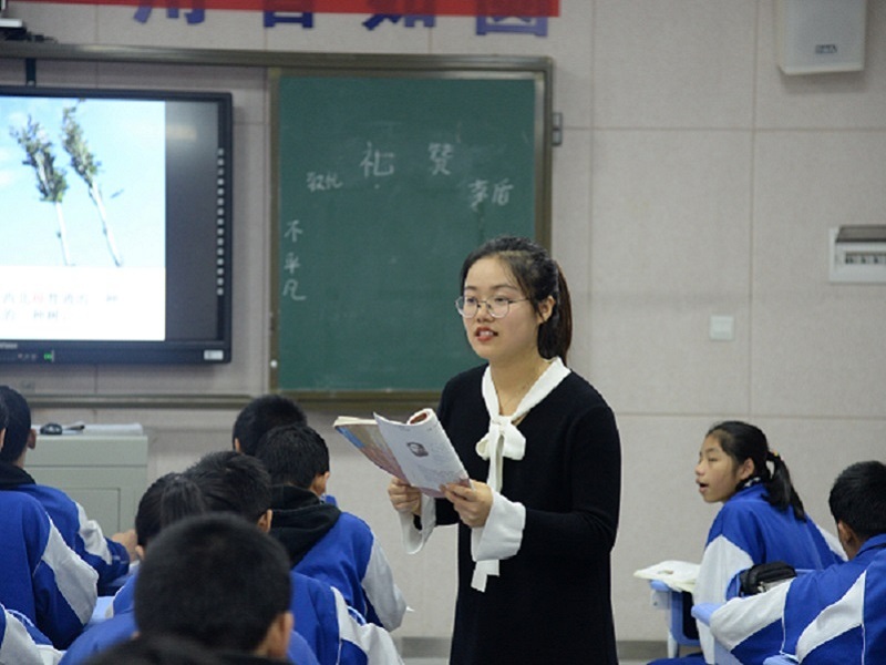 上午9点钟,随着悦耳的上课铃响起,实习队的最后一堂课——准语文老师陈乐的《白杨礼赞》开始了。她的课堂由猜字谜的小游戏开始,使学生迅速进入了轻松活跃的课堂氛围。随后,她针对课文的要点——白杨树的不平凡与学生展开讨论。“为什么作者要赞扬白杨树?”她提出的这个问题将课堂氛围带上高点,学生们齐声朗读课文,踊跃回答白杨树所代表的默默无名的英雄前辈的精神,使课堂内容得到了升华。