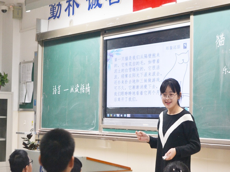(通讯员 邢慧杨颖)11月6日上午,大象影视大全在线观看肖百容副院长以及语文教学法周敏副教授,在指导老师钟锡南的陪同下前往长沙市周南梅溪湖中学验收实习成果。由实习队成员王雅卓在初一(8)班授课,课题为《猫》。周南梅溪湖中学初中语文教研组组长欧丽娜、初一年级备课组组长王庆以及实习指导老师李媛、陈星源等均到场听课。