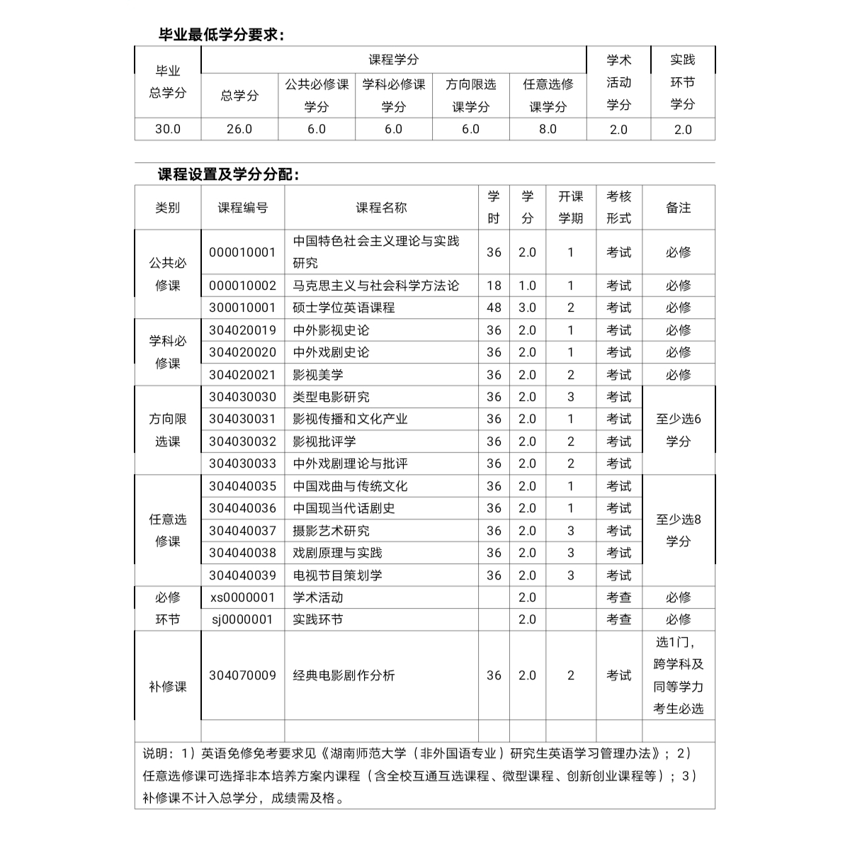 实践环节包括科研实践、教学实践与社会实践等类别。实践环节占2学分,其中科研实践占1学分,主要以参与会议提交论文的形式进行;教学实践或者社会实践占1学分,主要是以在湖南卫视集中实践的形式进行。具体要求参照《湖南师范大学研究生实践活动实施管理办法》。