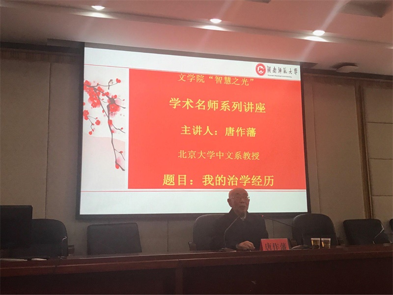 (通讯员 陈鑫鑫)12月21日下午,中国当代著名音韵学家、语言学家,北京大学中文系资深教授唐作藩先生做客大象影视大全在线观看,为研究生带来了一场以“我的治学经历”为题的精彩讲座。讲座在216教室举行,由大象影视大全在线观看蔡梦麒教授主持。