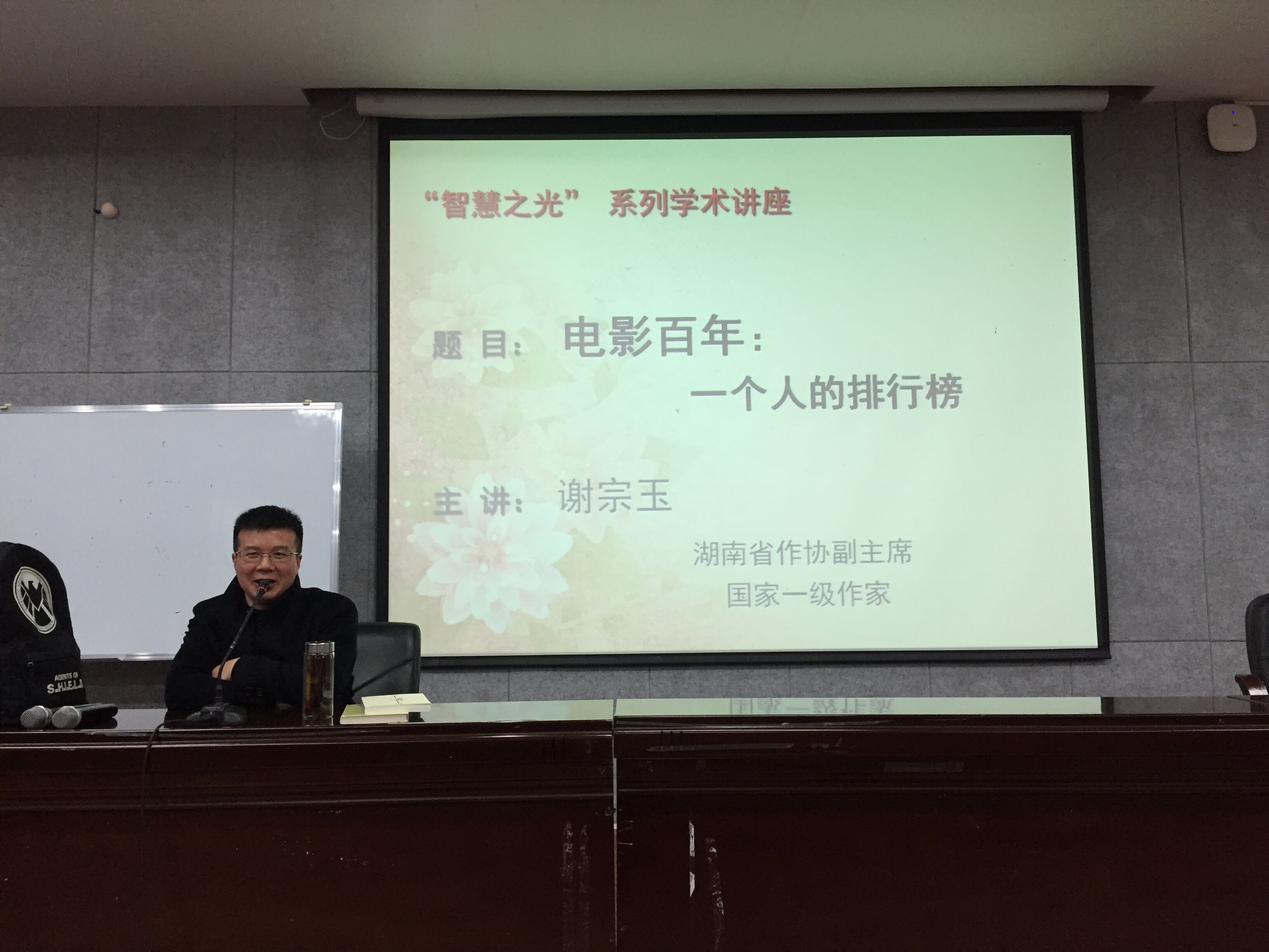 (通讯员 谭霁 杨艾菁)为培养研究生艺术鉴赏能力,提升文学素养,3月16日下午,我院于217教室举行了题为“电影百年:一个人的排行榜”智慧之光专题讲座。湖南省作协副主席、一级作家谢宗玉担任主讲。