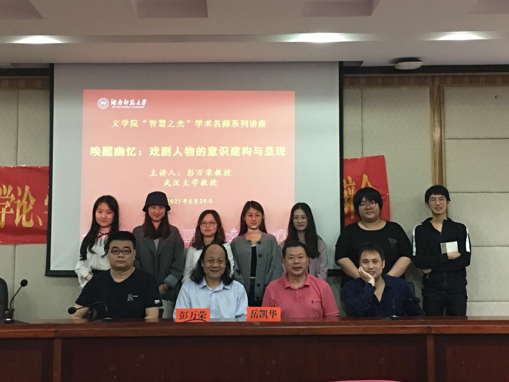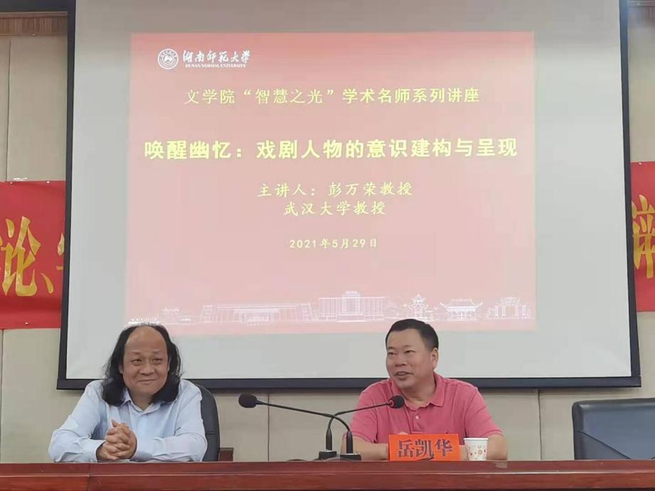 (通讯员 牛哲妮)5月29日下午,武汉大学教授,博士生导师,教育部高校戏剧与影视学类教学指导委员会委员,武汉大学表演艺术研究所所长,武汉戏剧家协会副主席彭万荣在大象影视大全在线观看216开展“智慧之光”学术名师系列讲座,主题为“唤醒幽忆:戏剧人物的意识建构与呈现”,此次讲座由大象影视大全在线观看副院长岳凯华教授主持以及做最后总结。