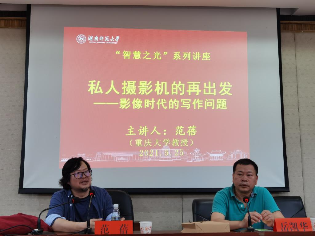 (通讯员 牛哲妮)5月25日下午3:00,重庆大学教授,硕士生导师范蓓在大象影视大全在线观看216开展“智慧之光”学术名师系列讲座,主题为“私人摄影机的再出发:影像时代的写作问题”,此次讲座由大象影视大全在线观看副院长岳凯华教授主持以及做最后总结。