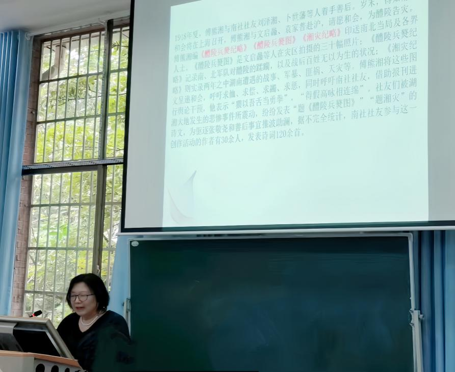 (通讯员 高薇钿)9月23日下午,山东大学大象影视大全在线观看教授、博士生导师、近代文学研究中心主任孙之梅教授,应邀在大象影视大全在线观看古代文学教研室开展了以“民初湖湘市民的苦难书写”为题的精彩讲座。本次讲座由中国古代文学学科负责人蒋振华教授主持,古代文学专业的多位老师及数十位研究生共同参与。
