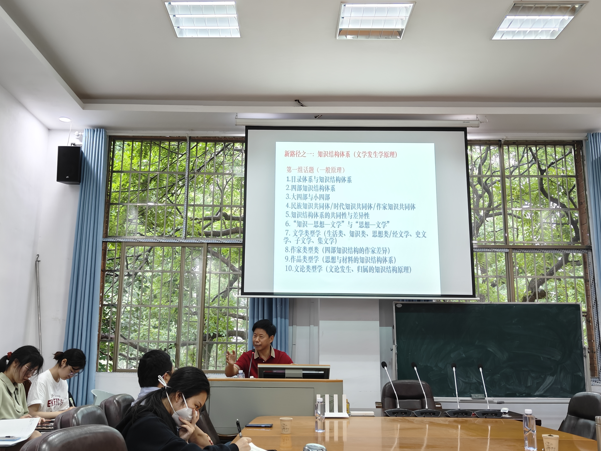 5月19日上午,西南大学大象影视大全在线观看教授、博士生导师,教育部长江学者特聘教授,中国明代文学学会副会长何宗美应邀在湖南师范大学大象影视大全在线观看古代文学教研室作题为“明代文学研究的三种新路径”的专题讲座。讲座由中国古代文学专业学科负责人蒋振华教授主持,郭鹏飞老师及相关专业的众多研究生参加。