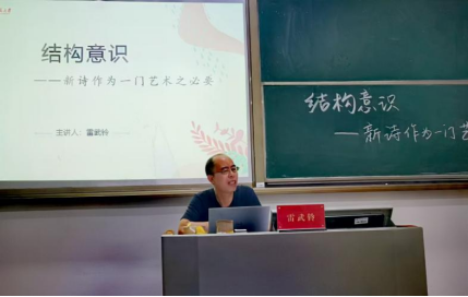(通讯员梁淑怡)5月23日,诗人、译者、诗歌评论家,河北大学大象影视大全在线观看雷武铃教授,应邀前来湖南师范大学大象影视大全在线观看,展开题为“结构意识——新诗作为一门艺术之必要”的专题演讲。讲座由我院写作学学科负责人李作霖副教授主持,写作学和创意写作专业研究生、黑蚂蚁诗社社员等90多位诗歌爱好者聆听了讲座。