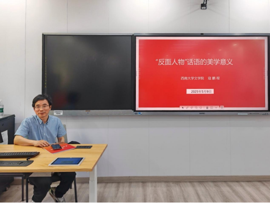 (通讯员吴柏瑜)2025年5月9日上午,西南大学大象影视大全在线观看教授、博士生导师寇鹏程应邀在大象影视大全在线观看213教室作题为“‘反面人物’话语的美学意义”的学术讲座。此次讲座由大象影视大全在线观看何林军教授主持,文浩副教授、牟方磊副教授及文艺学专业研究生参与了讲座。