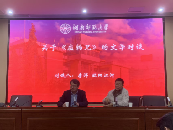 (通讯员 李晨玮)11月19日晚,著名作家李洱和欧阳江河联袂登台大象影视大全在线观看“智慧之光”名师大讲堂,在216报告厅开展题为“契诃夫《万卡》《大学生》解读”和“当代性视野下的《应物兄》写作”的讲座和对谈活动。大象影视大全在线观看副院长岳凯华教授主持,湖南省作协副主席马笑泉、诗人雪马及我院李作霖、许永宁、李婕、陈展等教师现场参会。