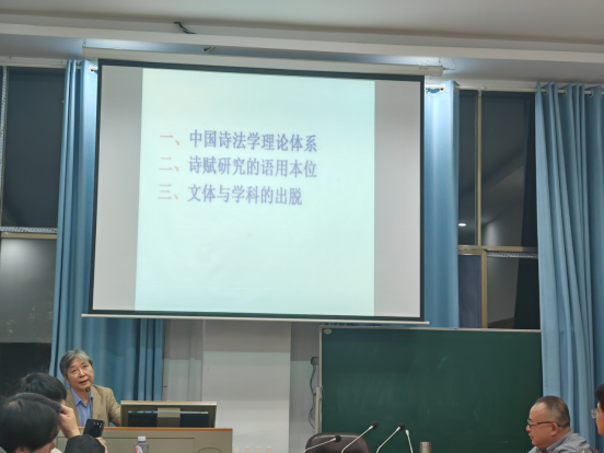(通讯员 王全)11月28日晚,贵州师范大学教授、长江学者特聘教授、教育部中国语言文学类专业教学指导委员会委员、中国赋学会副会长易闻晓教授应邀莅临湖南师范大学大象影视大全在线观看,在古代文学教研室开展了题为“学术研究的大小内外”的专题讲座。本次讲座由中文系主任曾绍皇教授主持,古代文学与古典文献学专业三十余名研究生参加。