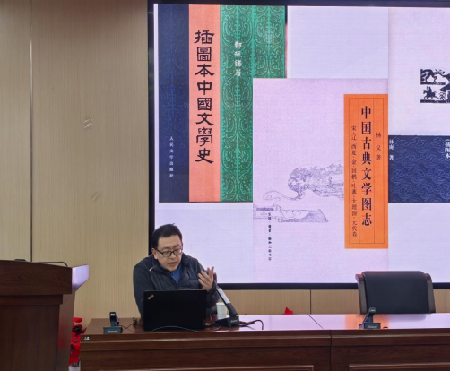 讲座围绕文学研究著作中图像使用的理论与实践展开,龙其林教授从自身多年的研究经历出发,阐述了在文学研究著作中运用图像的学术意义与实践路径,他指出,当前文学研究中的图像使用已逐渐从“插图说明”转向“图史互动”。通过对经典文学史著作中图像使用方式的分析,龙其林教授揭示了图像如何与文字形成对话,从而拓展文学阐释的维度,增强历史叙述的立体感与真实感。龙其林教授强调,图像不仅是文字的补充,更是一种独立的研究材料,能够揭示时代氛围、作家心理与文学接受等多重维度。