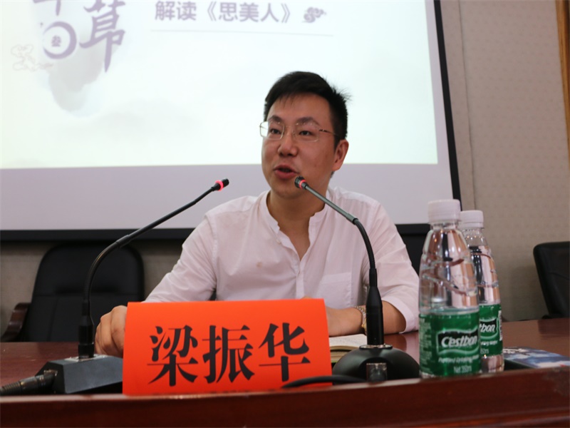 我院党委书记李伶俐为讲座致辞,分享自己观看电视剧《思美人》的感受。梁振华从“为何选择屈原”和“美人的意义”两个角度讲述自己的创作历程。他表示,自己从大学时便与屈原结缘,通过《思美人》这部剧,能够使成千上万的观众了解屈原,或者重读屈原,就已经达到了他的愿望。