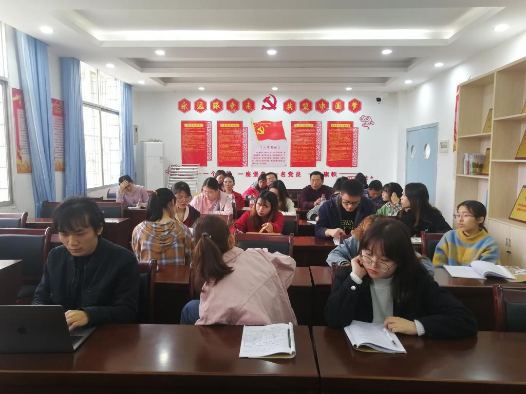 课后,双方领导老师及实习队全体成员随即开展评课会,初三语文组组长刘聪老师担任此次评课活动主持人。李赛男陈述了教学思路并发表自己的看法,陈道谦、贺福凌、李霞、彭万福和刘聪先后对公开课进行了点评,他们一致认为这是一堂比较优秀的新教师示范课,同时就朗读设计、将课堂交还学生等方面提出了建议。最后,彭万福肯定了实习队的工作,并希望实习队员们珍惜机会,加强专业锻炼,为今后成为一名优秀的教师而努力。