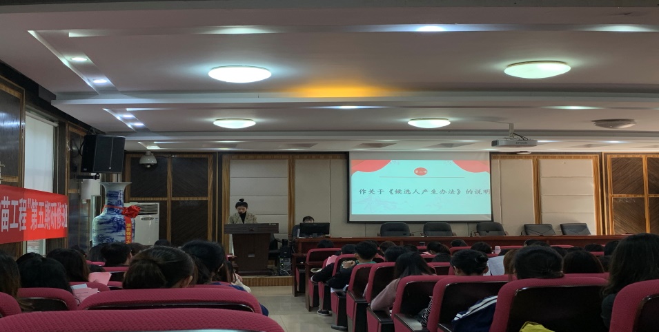 最后,院研究生办陈雅琪老师发表讲话。她从学籍制度、培养计划、奖助学金、毕业问题这四个方面给大家介绍了研究生的培养制度,希望同学们在学业上能够有所成就,成为社会的栋梁之材。