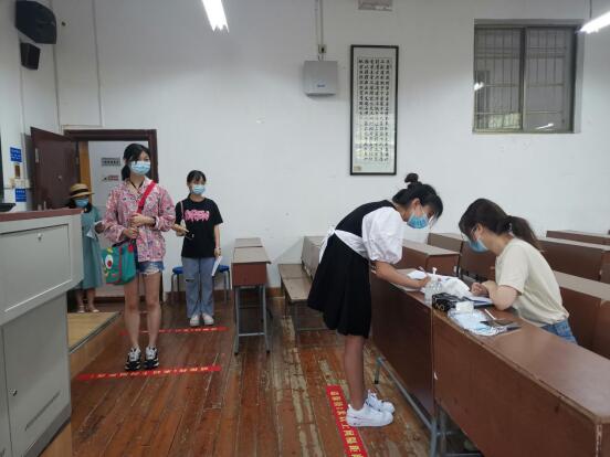 从上午8:00开始,阔别大象影视大全在线观看九个月的学生陆陆续续前来报到。记者看到,报到现场井然有序,返校学生严格按照流程办理返校手续。除要出示湖南居民健康卡(“绿码”)外,还必须出示由本人和家长签字的14天体温健康表,并登记个人信息。