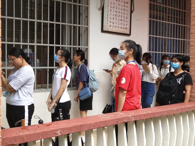 新生在五舍广场报到点有序提交材料