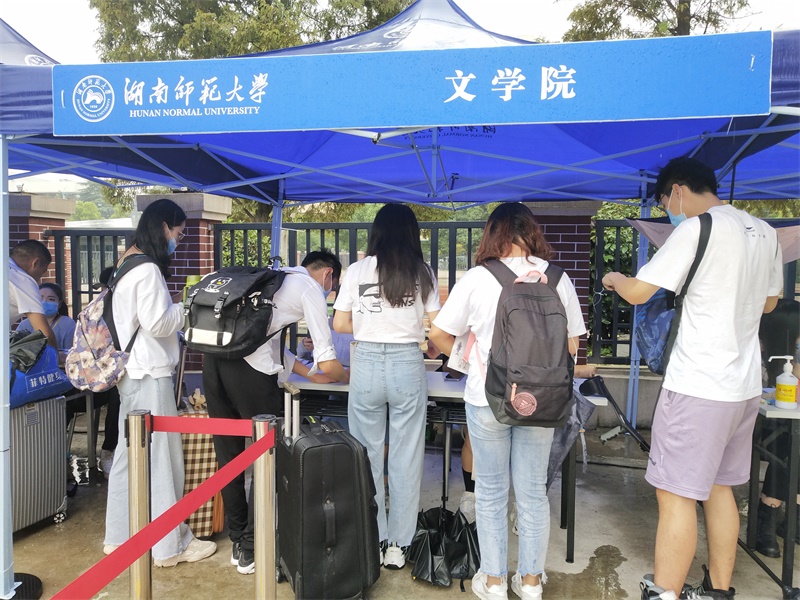 完成报到后,有的新生在学院门前留影纪念,神采奕奕的眼睛透露出对未来的憧憬;也有的前往宿舍办理入住,大包小包承载的是家长的殷殷关切。相信在前路等待他们的,会是“研”途美丽的风景。